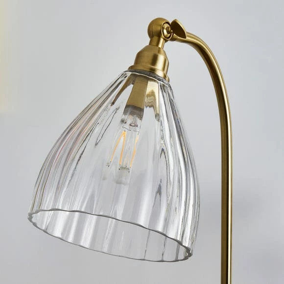 Featuring a curved stem, this stunning Churchgate Allexton Glass Table Lamp has a striking brass base for a stylish appearance, paired with a gorgeous clear flutted ribbed glass shade for a feminine touch. This table lamp comes complete with a 1.2m cable and inline switch, making it easy to turn on and off. Pair this floor lamp with matching family pieces from the Churchgate Allexton range for a coordinated look.