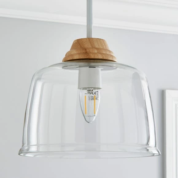 Featuring the Churchgate Croxton Easy Fit Pendant, perfect for brightening up your room. Crafted with a stunning clear glass shade, finished with a natural wood finish top. This piece is timeless and perfect for adding a modern touch to your home. Coordinate your home with matching Churchgate Croxton family pieces.
