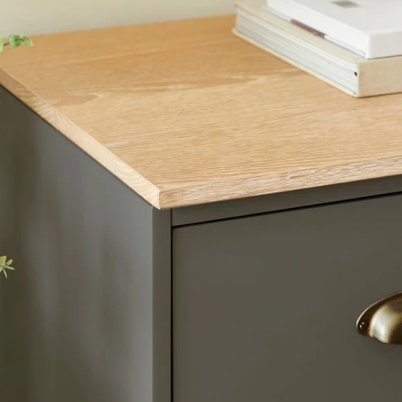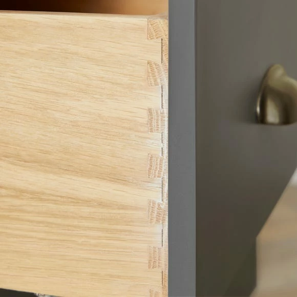 This gorgeous Churchgate 5 Drawer Base Unit provides stunning counter and storage space in any kitchen or living room. Designed with a classic farmhouse-style look, this unit comes with 5 spacious drawers that are perfect for organising and helping to keep your home looking tidy. Finished with stylish brushed cup handles and a sleek coat of paint available in a graphite grey colourway, this unit can be used on its own or can be mix and matched with other units within the Churchgate range, perfect for creating a customised counter or storage space in your home.