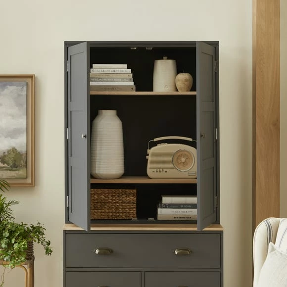 Perfect for adding additional storage space to your home, this Churchgate top unit has been designed to perfectly complement the Churchgate base units for a customised look suited to your home and needs. This beautifully constructed unit provides a great amount of storage space and features adjustable shelving. Designed with a classic farmhouse-style look, this unit is finished with stylish brushed handles and a sleek coat of paint available in a graphite grey colourway.
