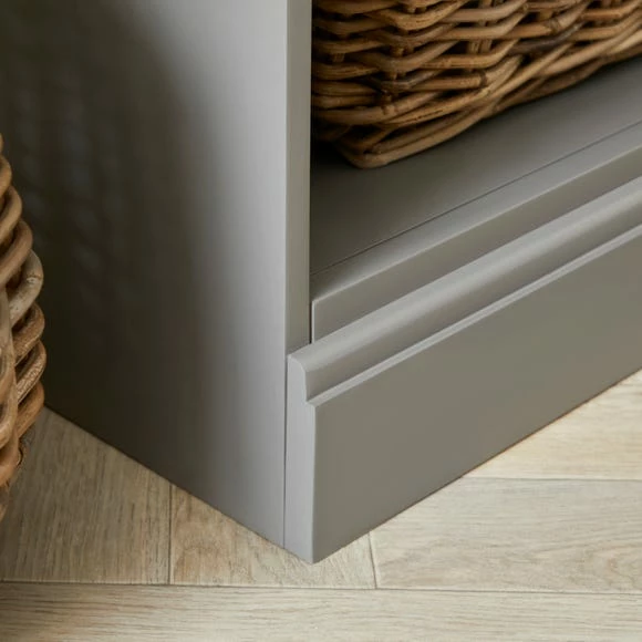Designed with a classic farmhouse-style look, this unit is finished with stylish brushed cup handles and a sleek coat of paint available in a steeple grey colourway. This Churchgate Base Unit is perfect for creating counter or storage space in your home that’s customisable to you and your needs. This beautifully constructed base unit provides ample amount of storage space and features adjustable shelving, the open shelves are perfect for displaying your most precious items and adding decoration to your space. This base unit can be used on its own or can be mix and matched with other units within the Churchgate range.